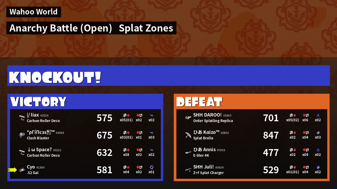 | Mode | Splat Zones - Anarchy Battle (Open) | ||