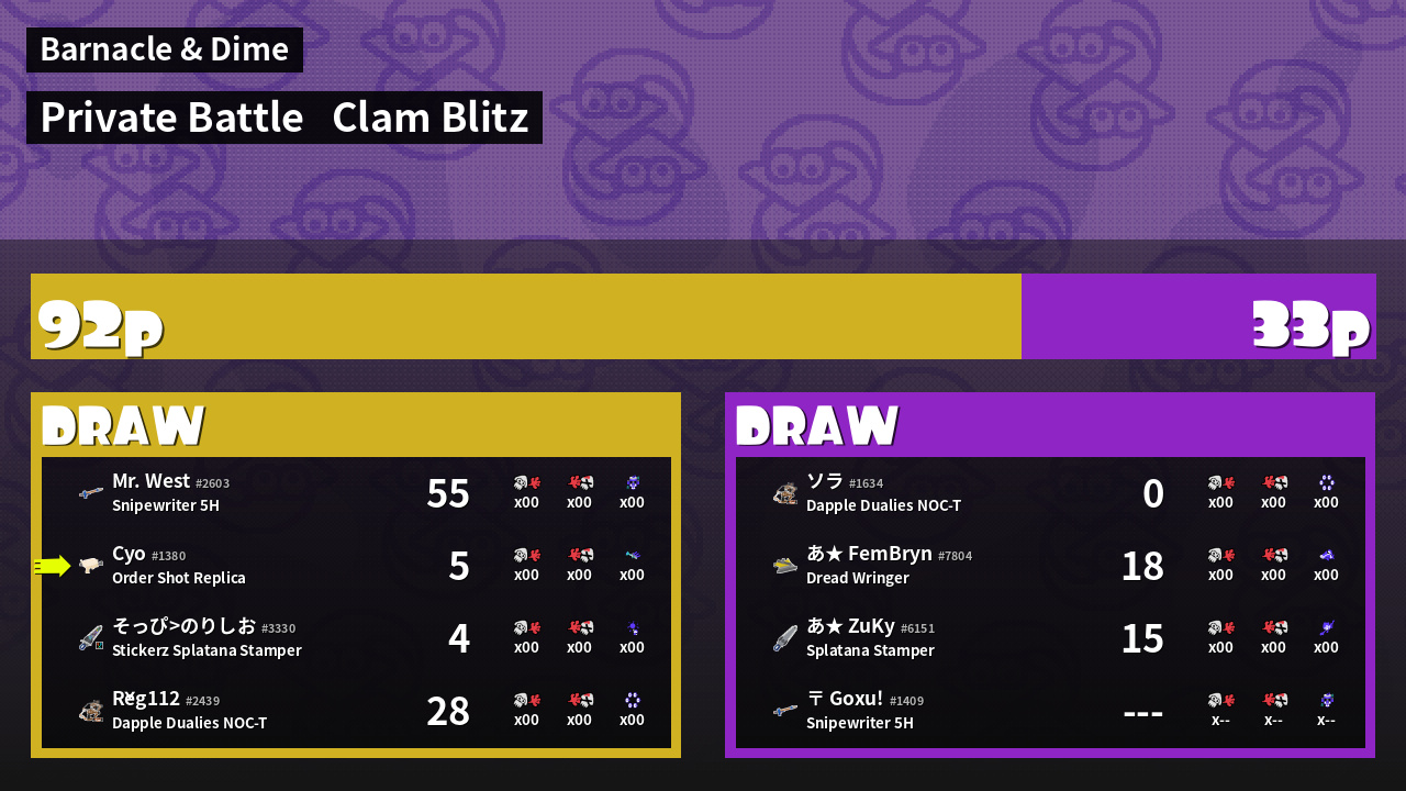 | Mode | Clam Blitz - Private Battle | ||