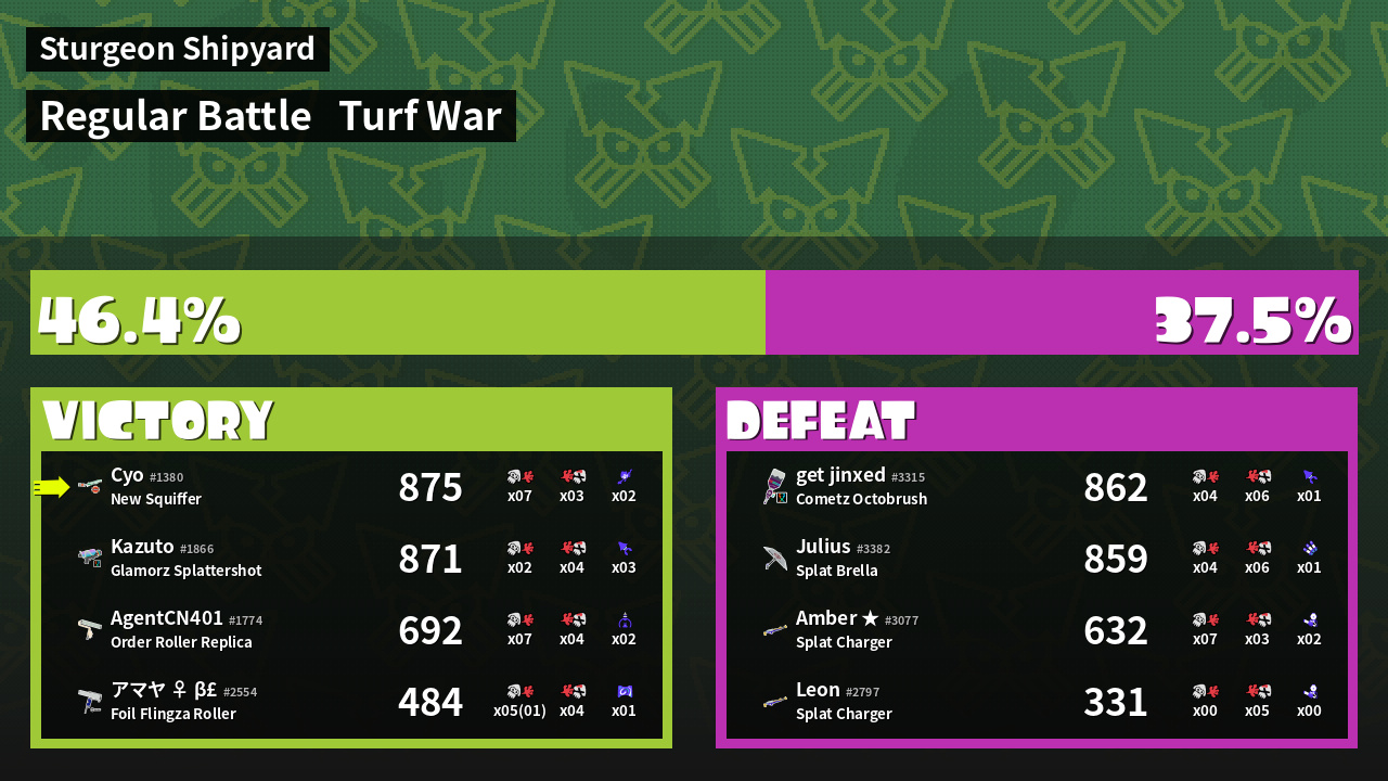 | Medals | #1 Overall Splatter #1 Turf Inker #1 Enemy-Base Inker | ||