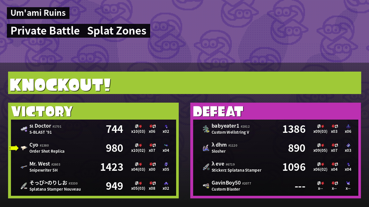 | Medals | #1 Overall Splatter #1 Splat Zone Guard #1 Enemy Splatter | ||