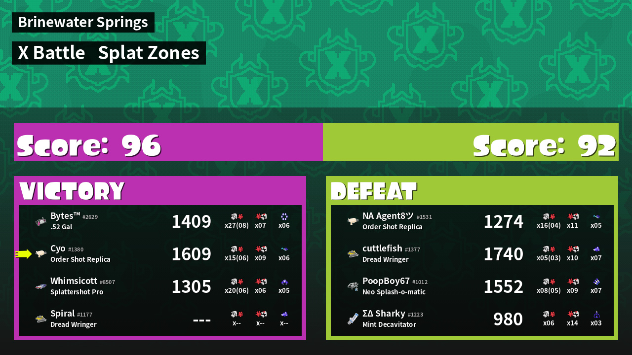 | Medals | #1 Splat Zone Inker #1 Splat Zone Guard #1 Turf Inker | ||
