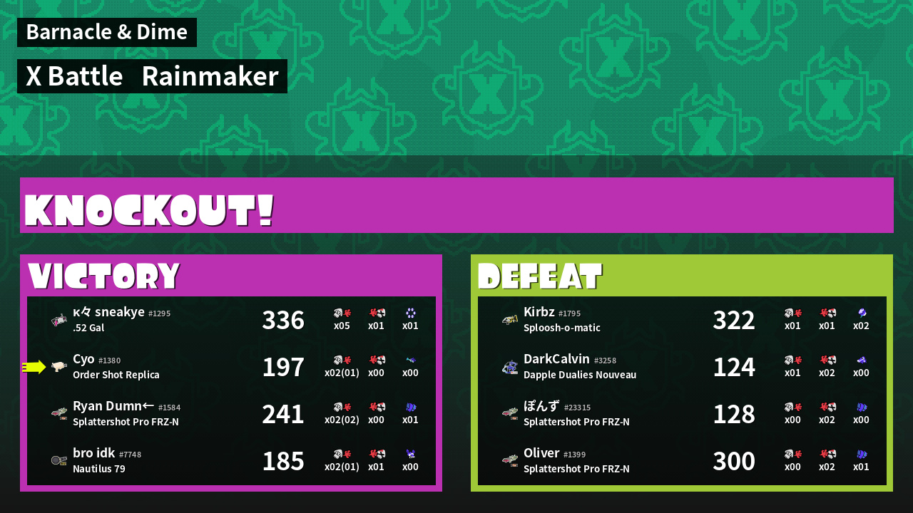 | Mode | Rainmaker - X Battle | ||