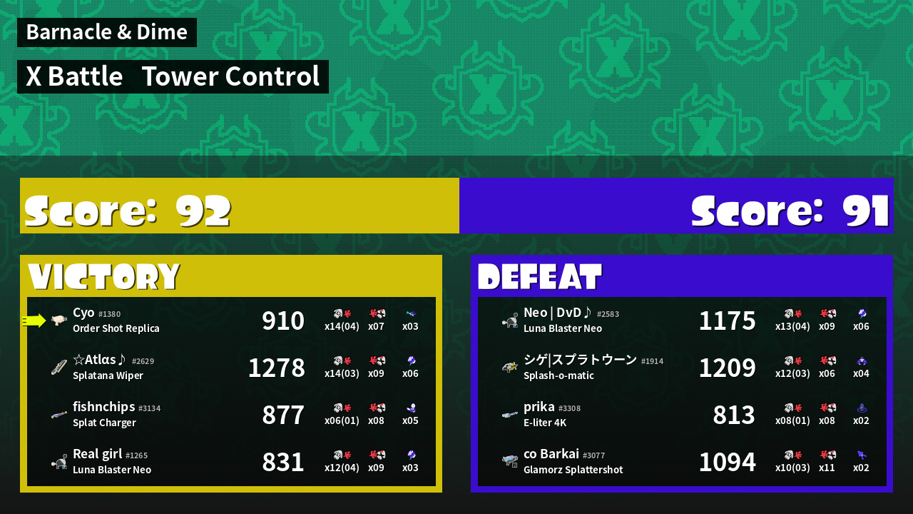 | Mode | Tower Control - X Battle | ||