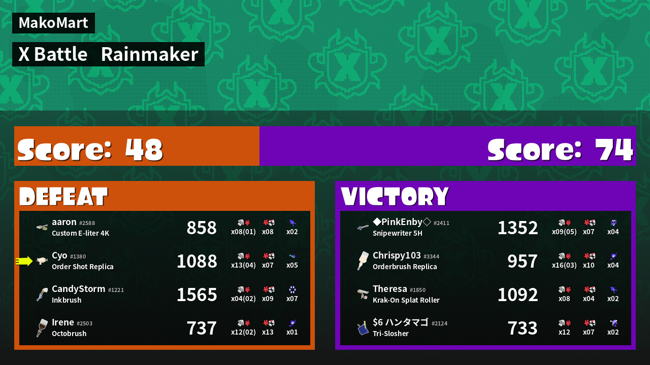 | Medals | #1 Overall Splatter #1 Splat Assister #1 Damage Taker | ||
