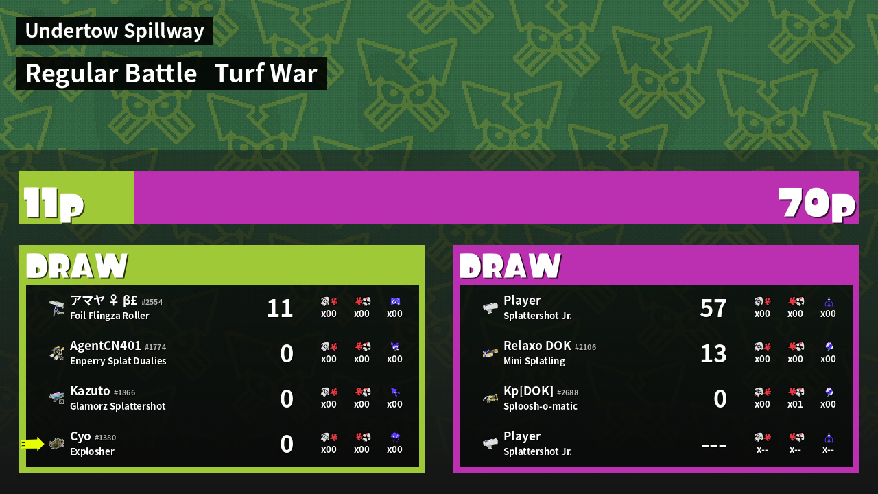 | Mode | Turf War - Regular Battle | ||
