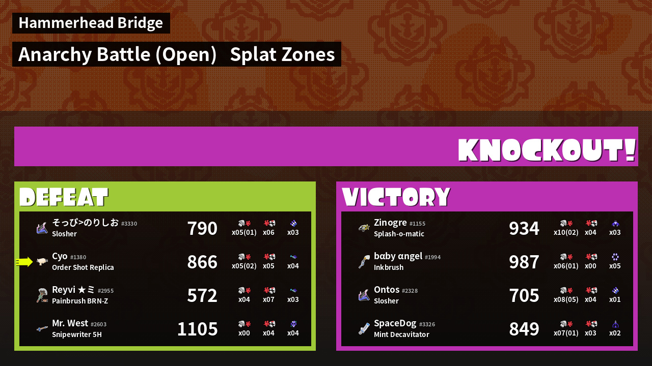 | Mode | Splat Zones - Anarchy Battle (Open) | ||