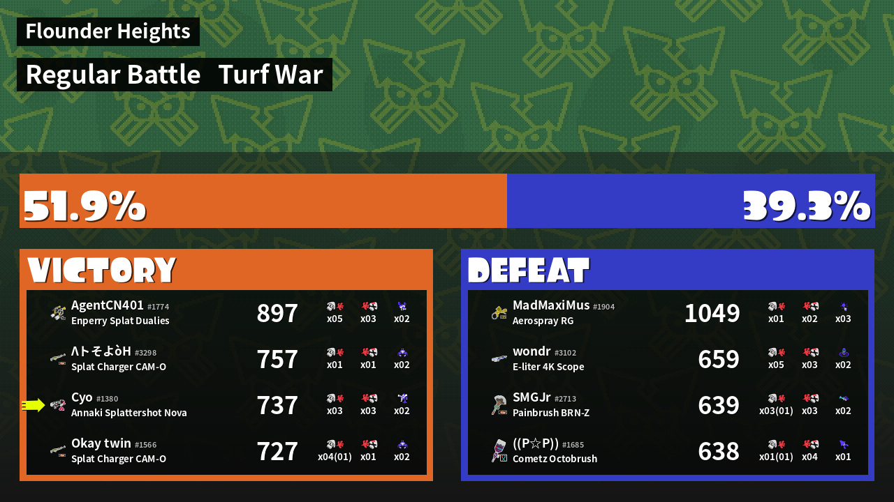 | Medals | #1 Popular Target #1 Enemy-Base Inker #1 Damage Taker | ||