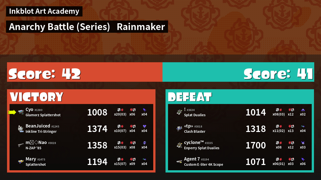 | Mode | Rainmaker - Anarchy Battle (Series) | ||