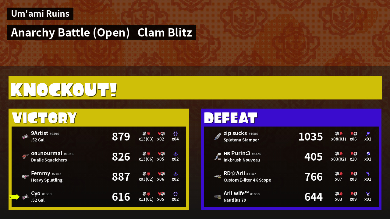 | Mode | Clam Blitz - Anarchy Battle (Open) | ||