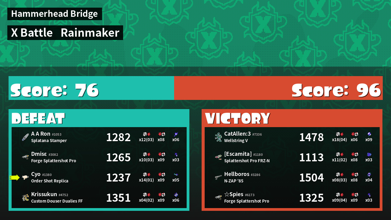 | Medals | #1 Overall Splatter #1 Enemy Splatter #1 Rainmaker Stopper | ||