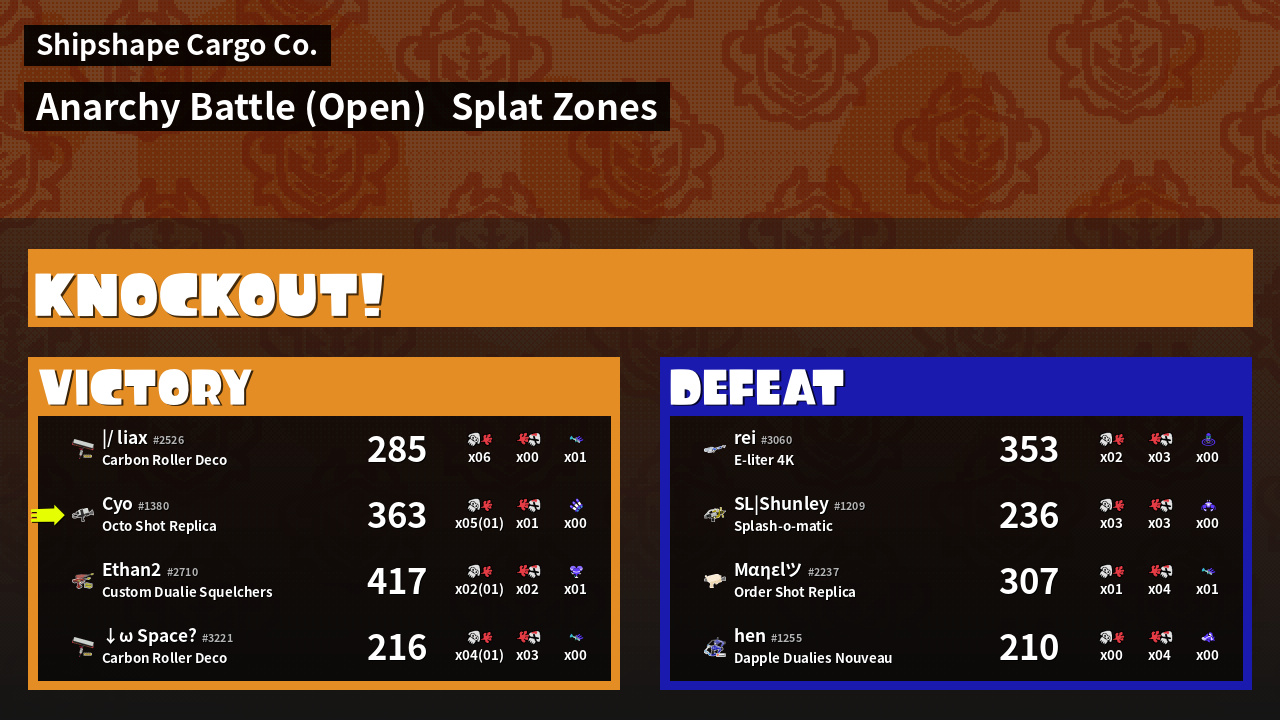 | Mode | Splat Zones - Anarchy Battle (Open) | ||