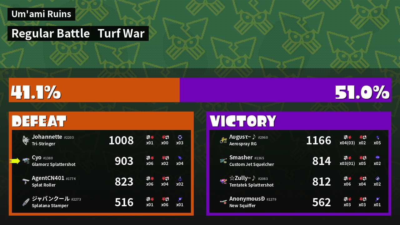 | Weapon | Glamorz Splattershot ( Burst Bomb / Kraken Royale) | ||