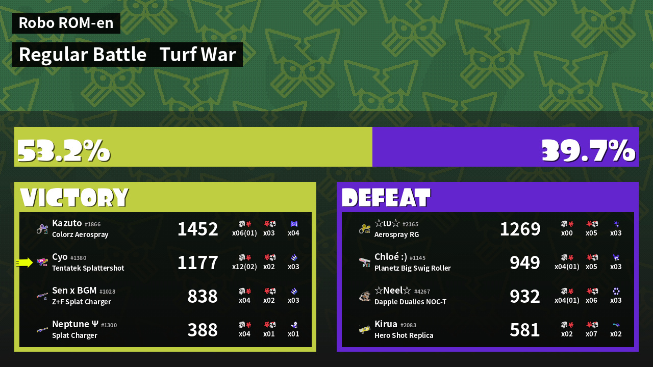 | Medals | #1 Overall Splatter #1 Popular Target #1 Enemy-Base Inker | ||