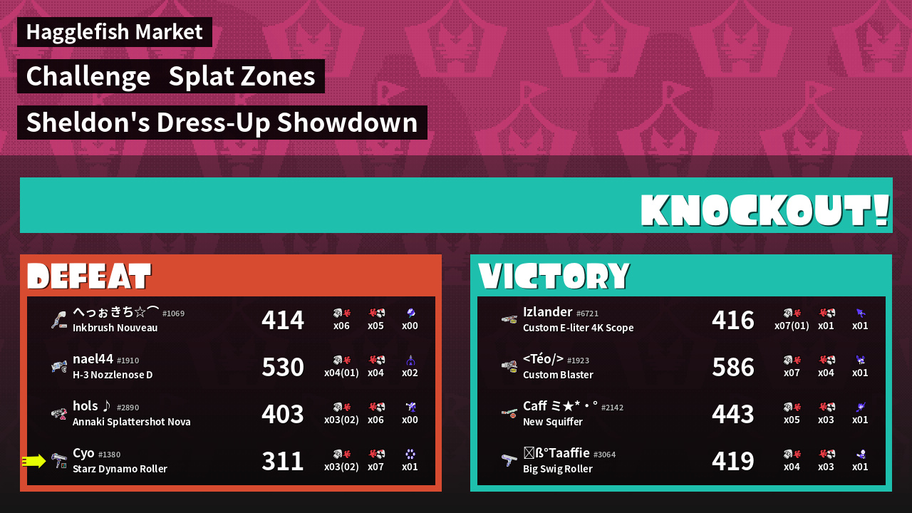| Medals | #1 Splat Zone Guard #1 Splat Assister #1 Killer Wail 5.1 User | ||
