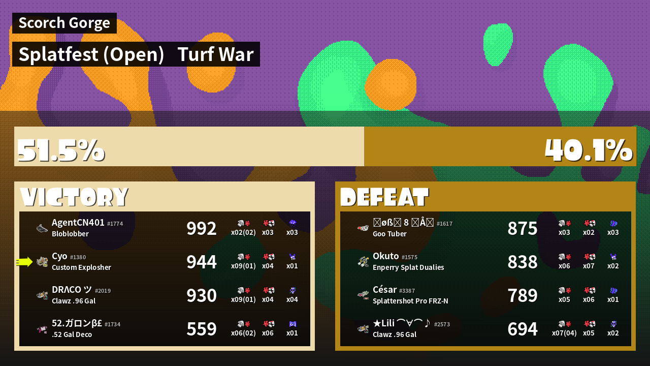 | Medals | #1 Overall Splatter #1 Super Jump Spot #1 Enemy Splatter | ||