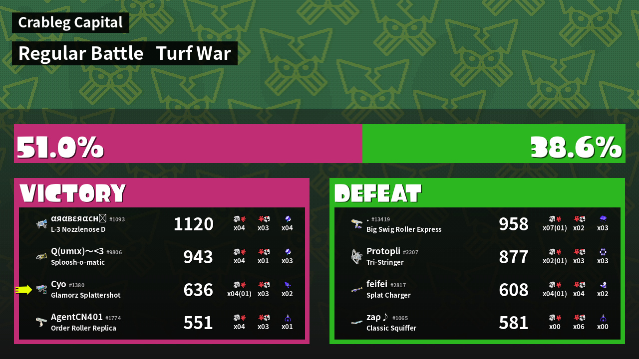 | Mode | Turf War - Regular Battle | ||