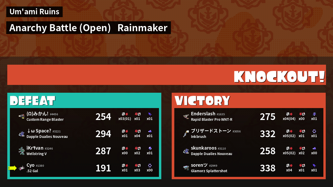 | Mode | Rainmaker - Anarchy Battle (Open) | ||
