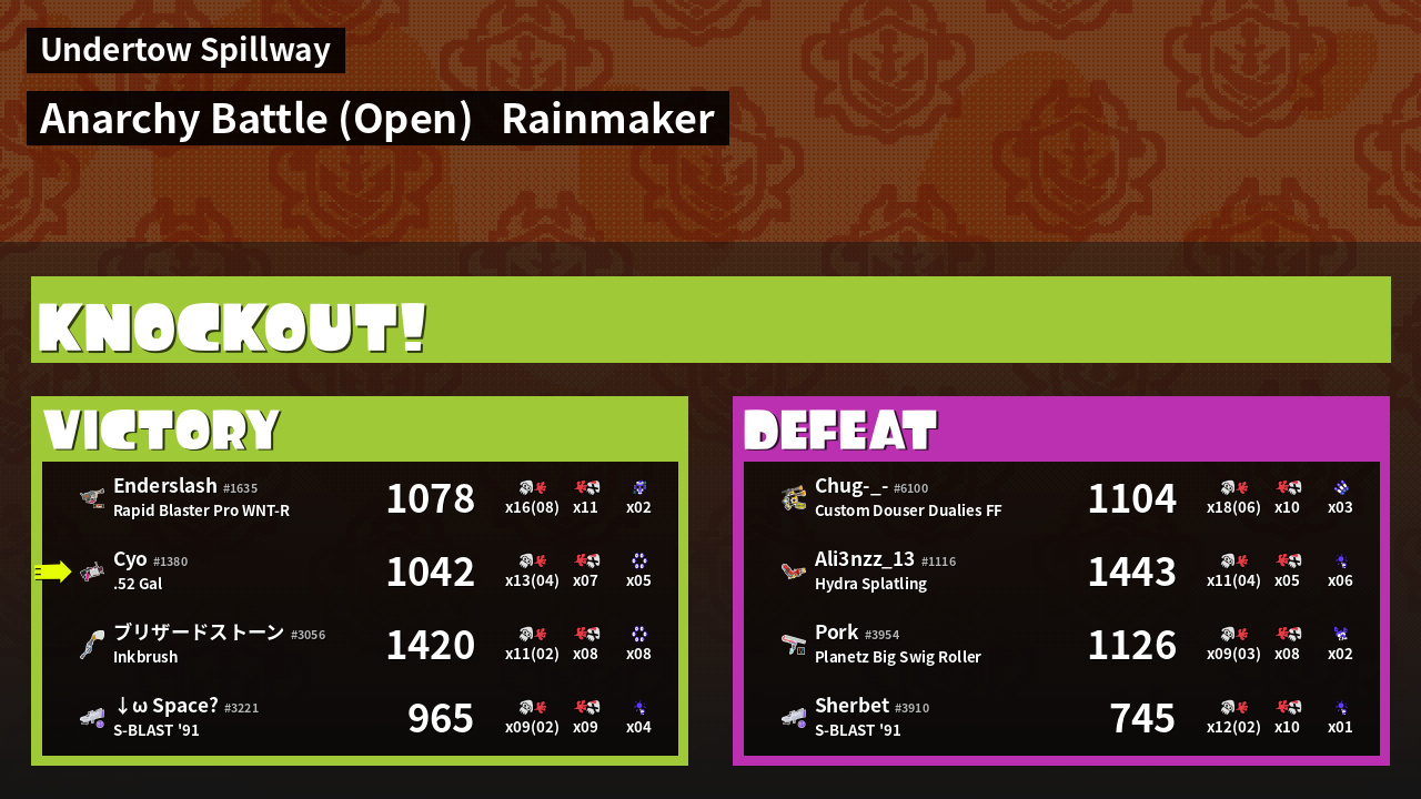 | Mode | Rainmaker - Anarchy Battle (Open) | ||