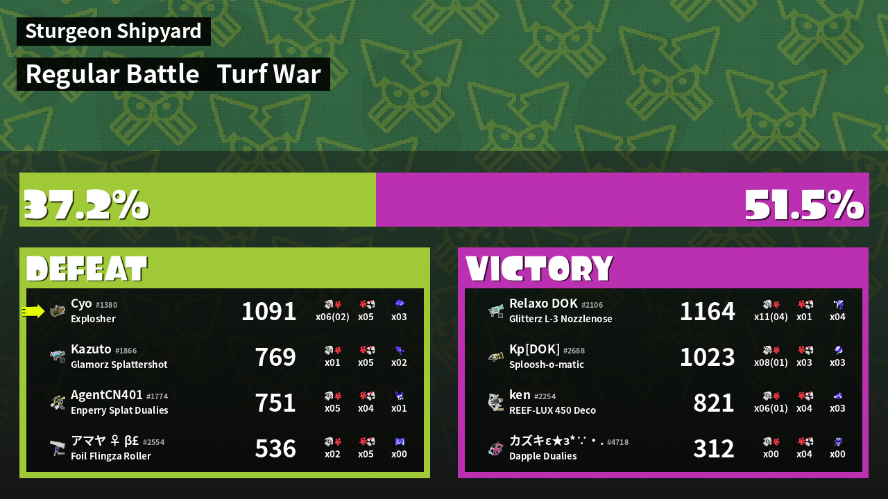 | Mode | Turf War - Regular Battle | ||