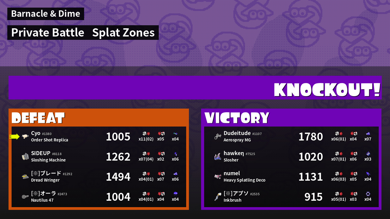 | Medals | #1 Overall Splatter #1 Splat Zone Guard #1 Enemy Splatter | ||