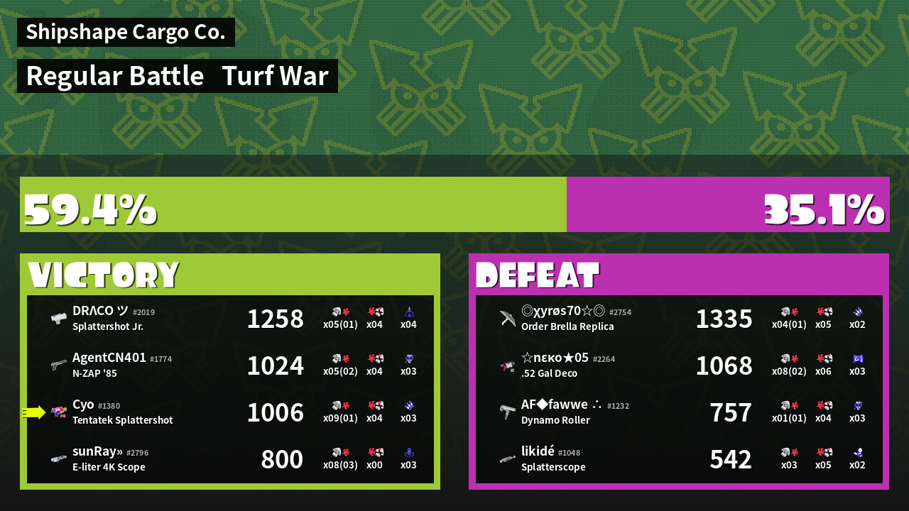 | Medals | #1 Overall Splatter #1 Popular Target #1 Enemy-Base Inker | ||