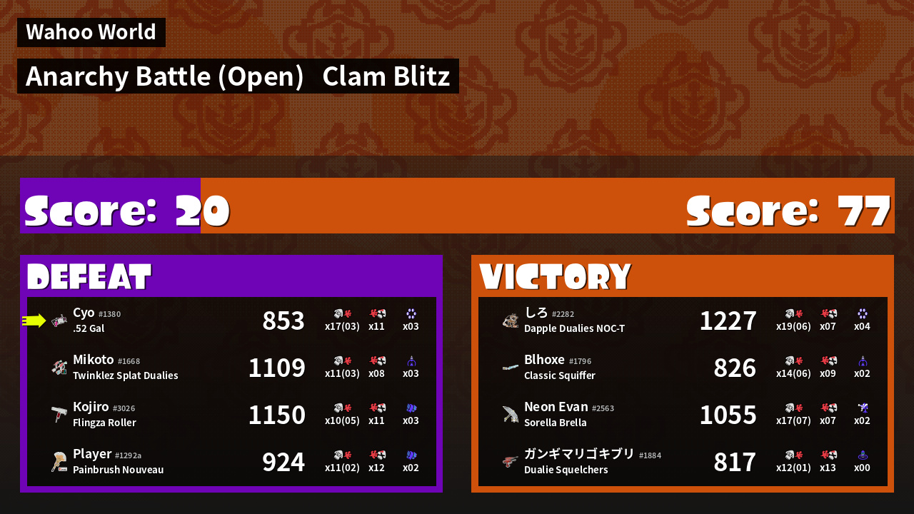 | Mode | Clam Blitz - Anarchy Battle (Open) | ||