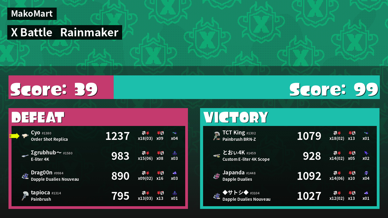 | Medals | #1 Overall Splatter #1 Turf Inker #1 Popular Target | ||