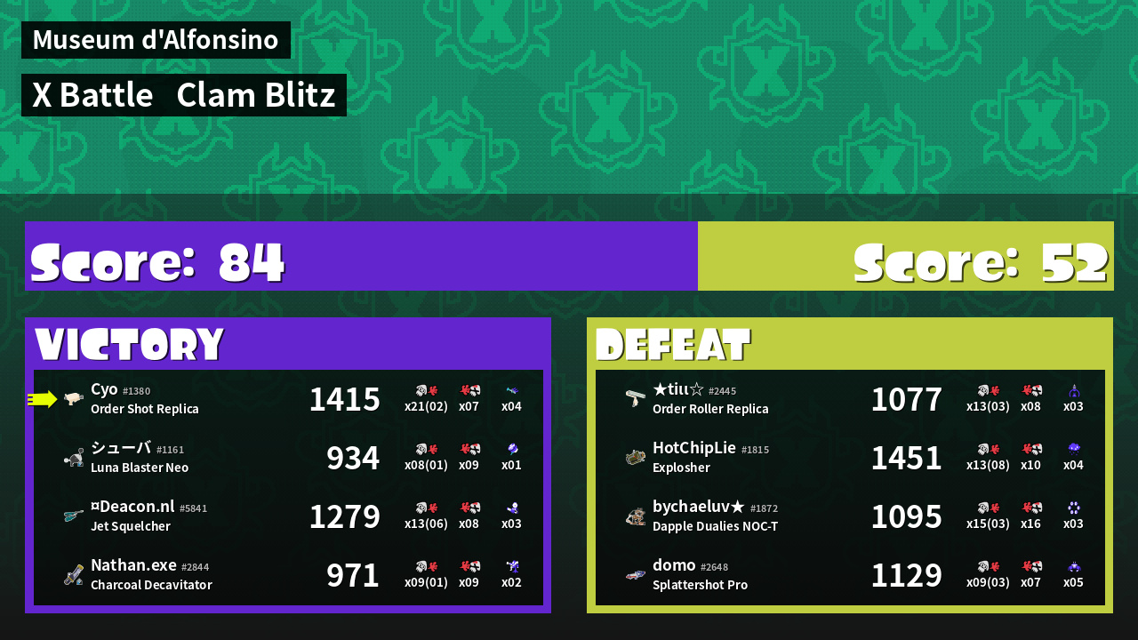 | Mode | Clam Blitz - X Battle | ||