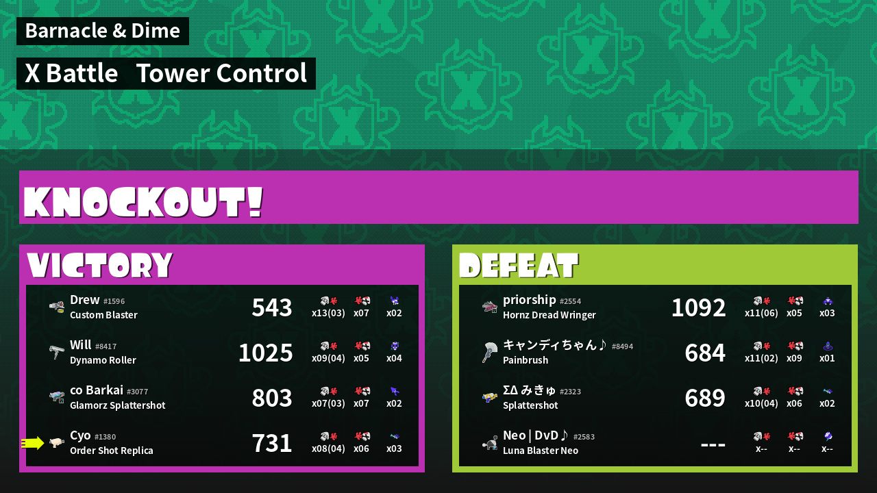 | Mode | Tower Control - X Battle | ||