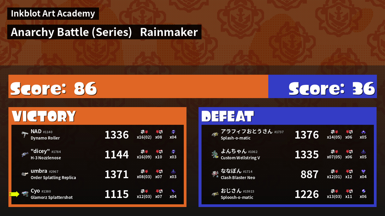 | Mode | Rainmaker - Anarchy Battle (Series) | ||