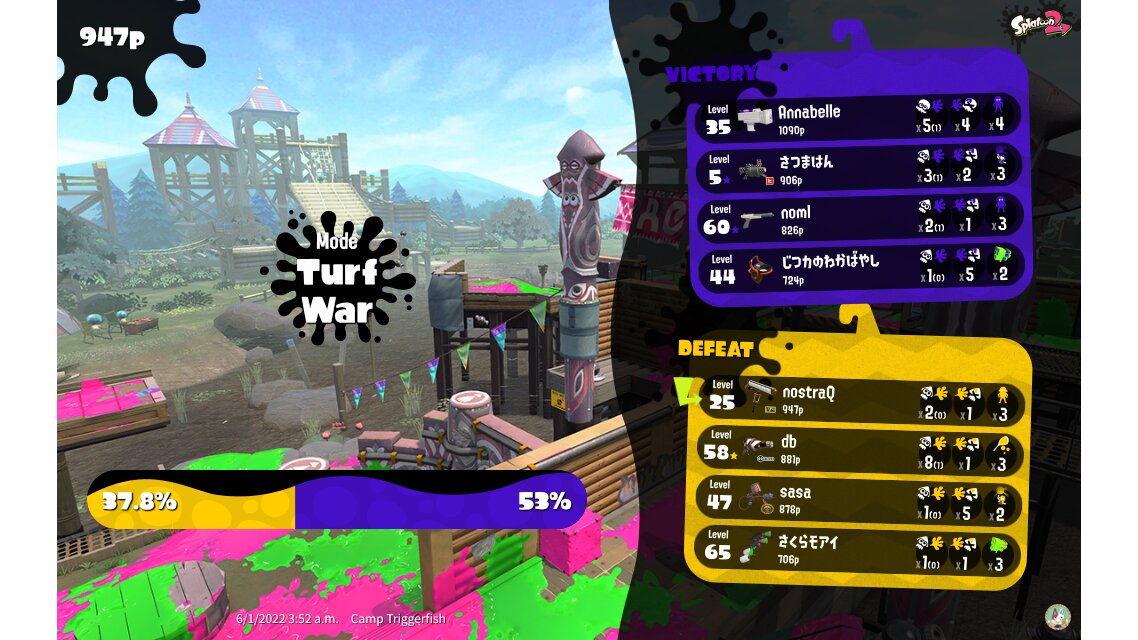 | Mode | Turf War - Regular Battle | |||||||||||||||||||||||||||||||||||||