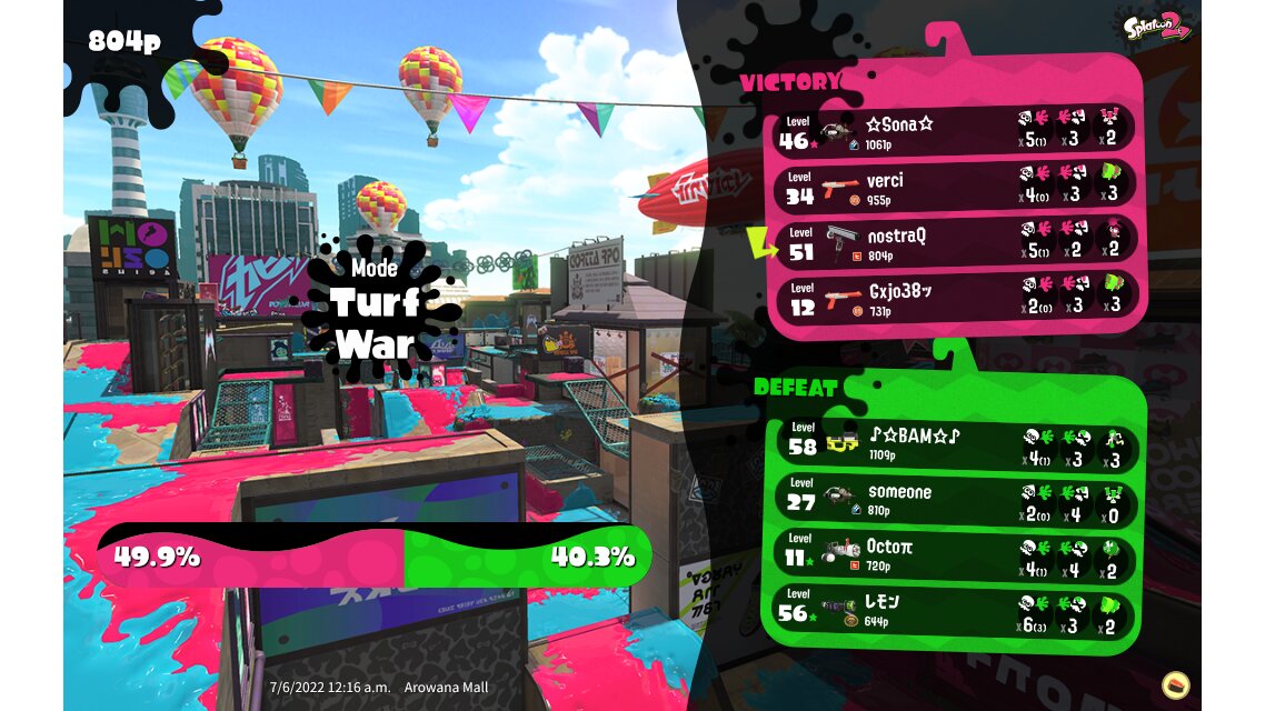 | Mode | Turf War - Regular Battle | |||||||||||||||||||||||||||||||