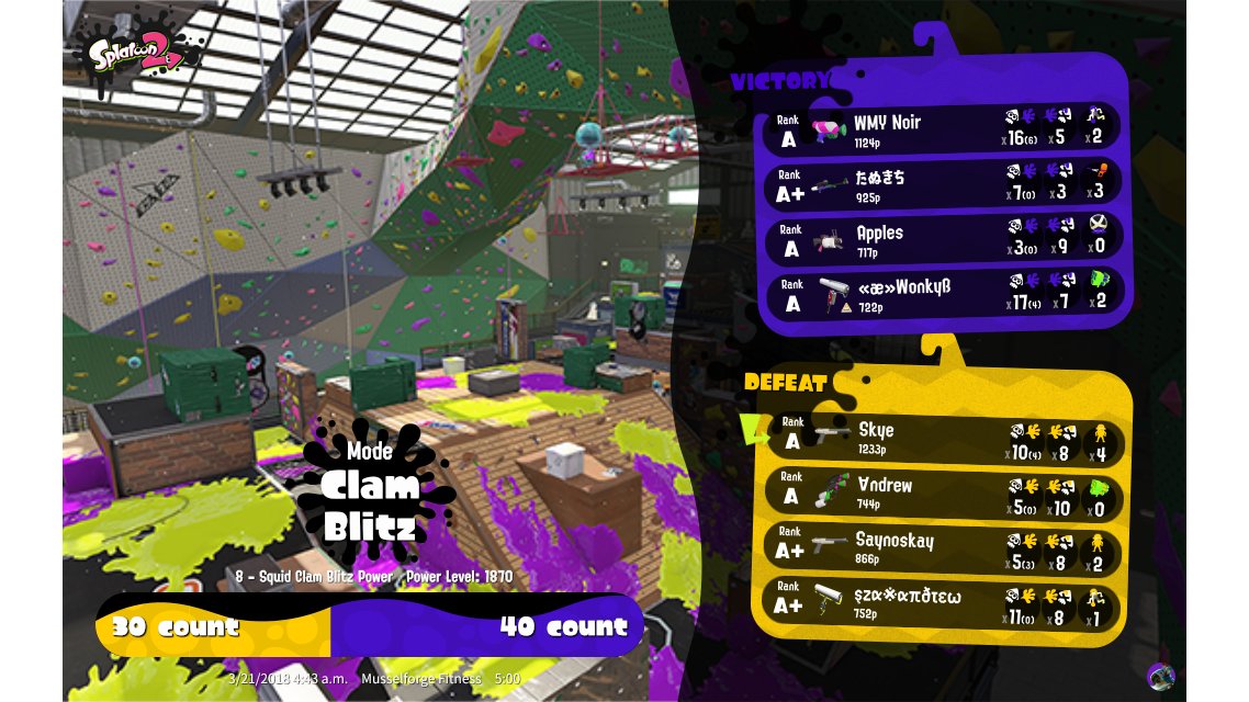 | Name | Weapon | Level | Rank | Inked | k+a/sp | k/d |