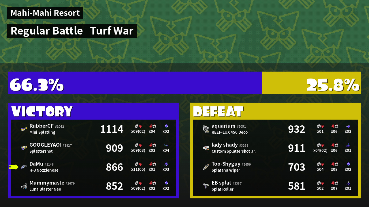 | Mode | Turf War - Regular Battle | ||