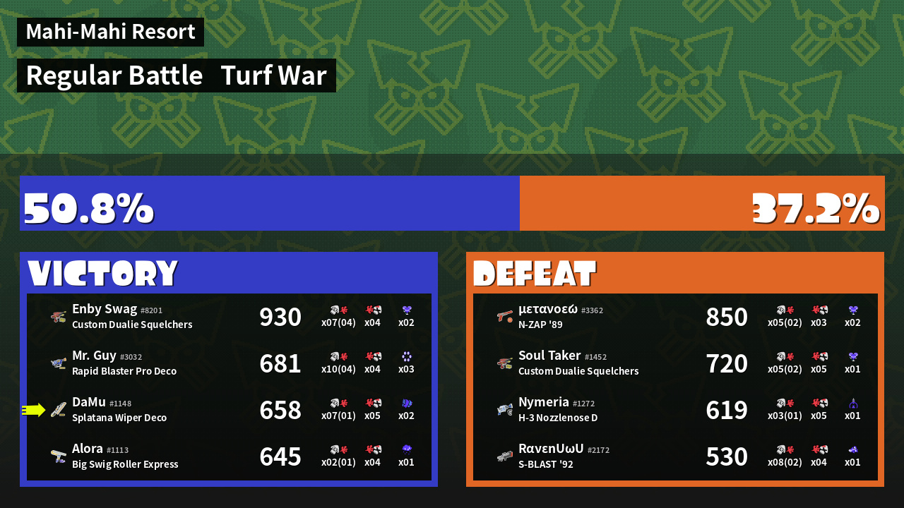 Kills / Deaths | 6 + 1 / 5 > Kill Ratio: 1.20 | ||