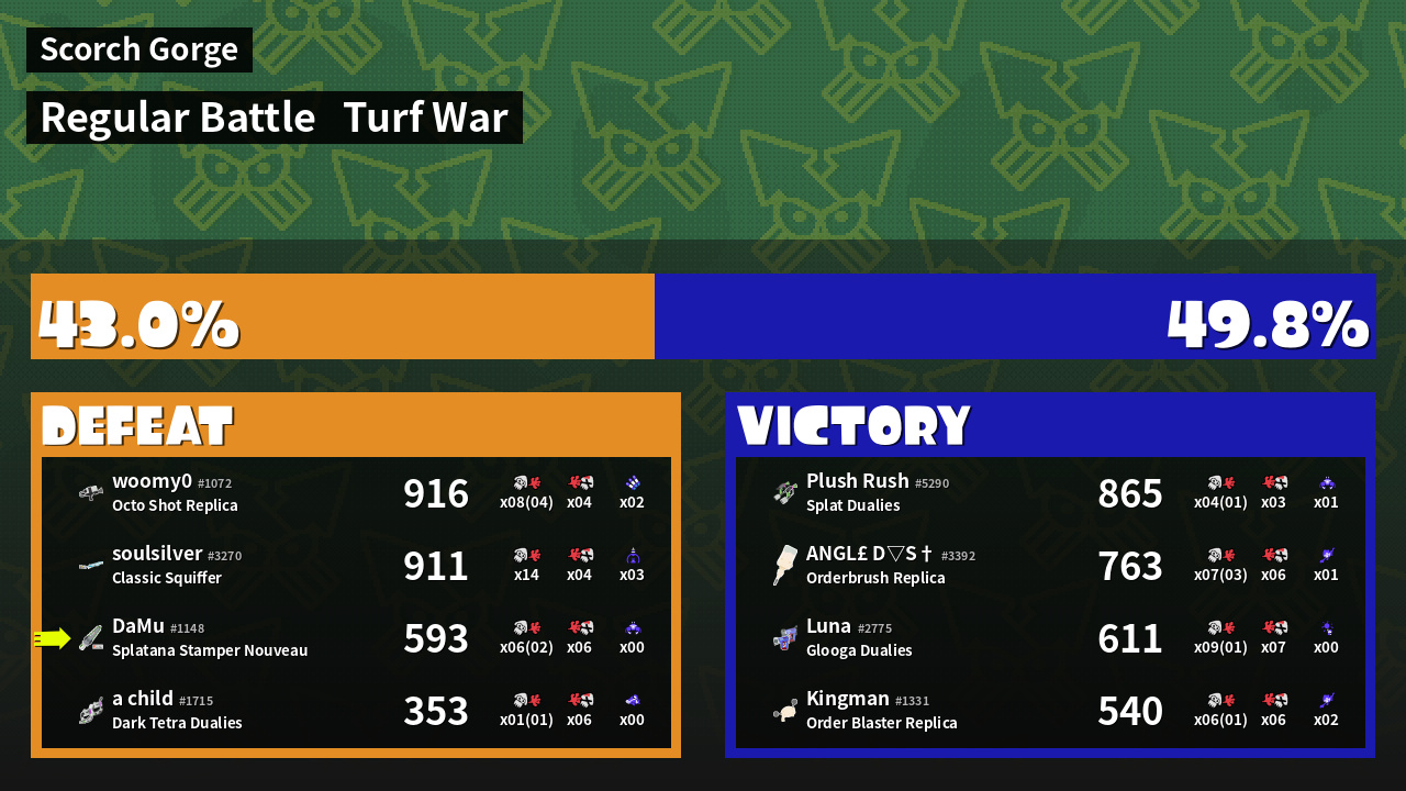 | Mode | Turf War - Regular Battle | ||