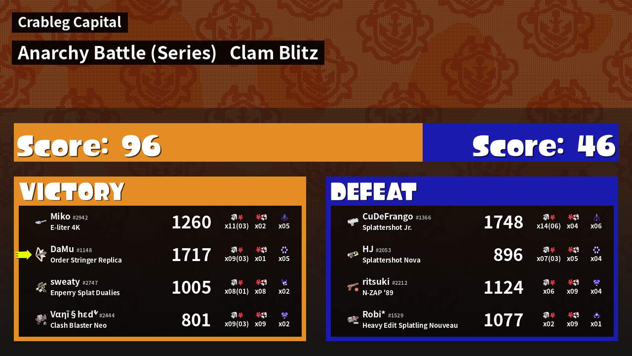 | Mode | Clam Blitz - Anarchy Battle (Series) | ||