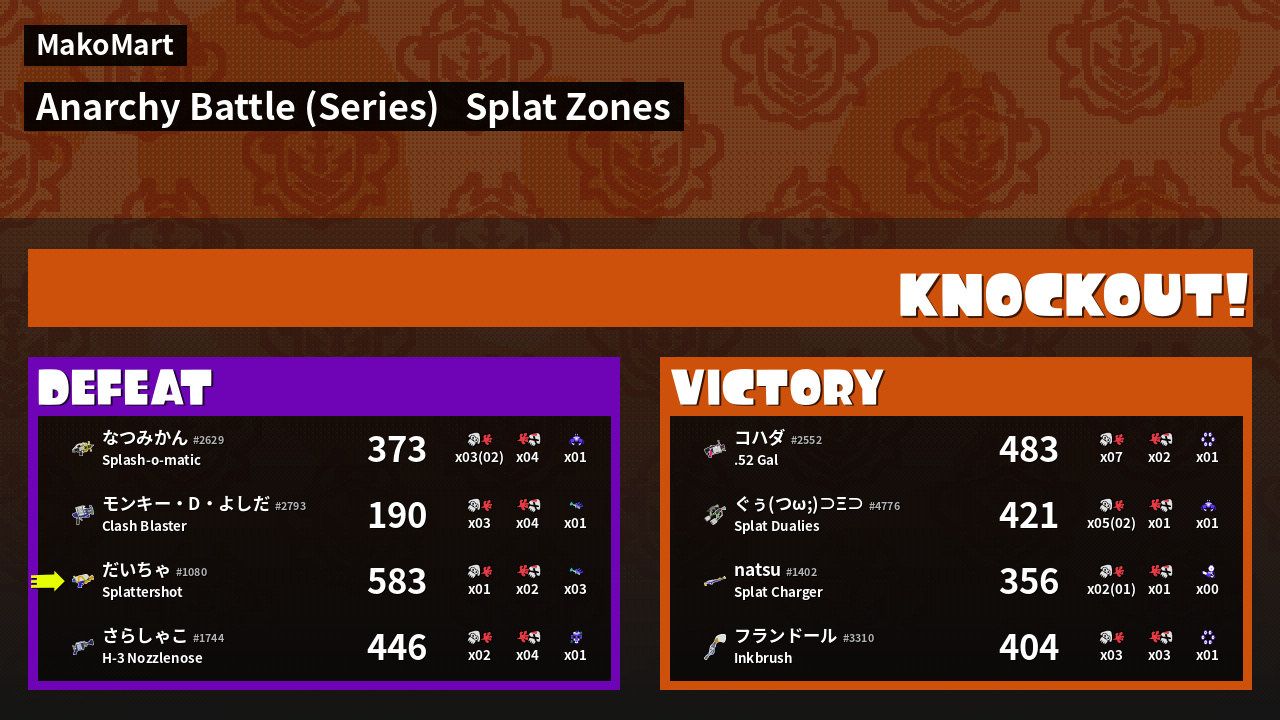 | Mode | Splat Zones - Anarchy Battle (Series) | ||