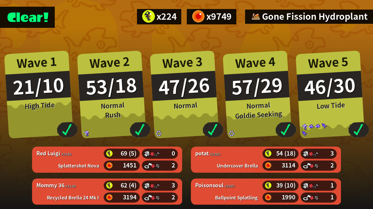 | Weapons | Splattershot Nova | Recycled Brella 24 Mk I | Undercover Brella | Ballpoint Splatling |