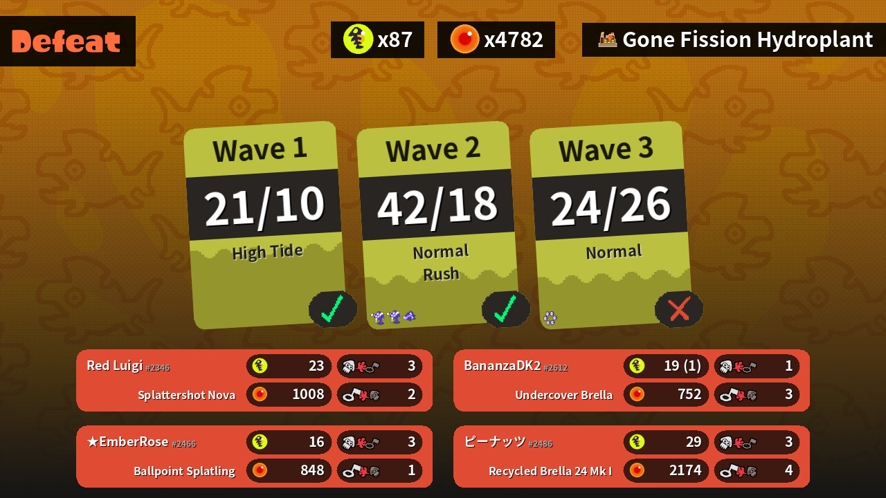 | Weapons | Splattershot Nova | Recycled Brella 24 Mk I | Undercover Brella | Ballpoint Splatling |
