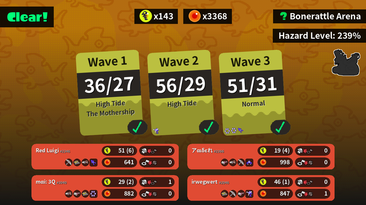 | Weapons | Splat Brella Dread Wringer Blaster | Dread Wringer Splat Brella Heavy Splatling | Blaster Heavy Splatling Dread Wringer | Heavy Splatling Blaster Splat Brella |