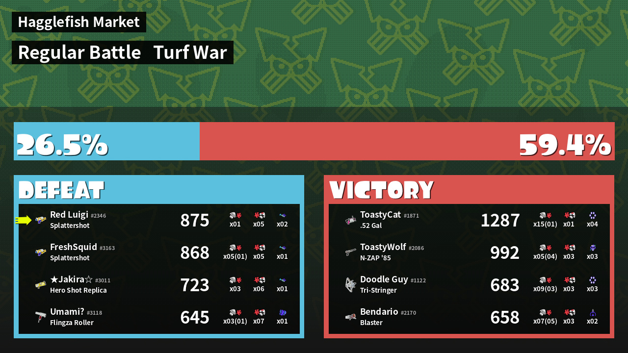 Kills / Deaths | 1 + 0 / 5 < Kill Ratio: 0.20 | ||