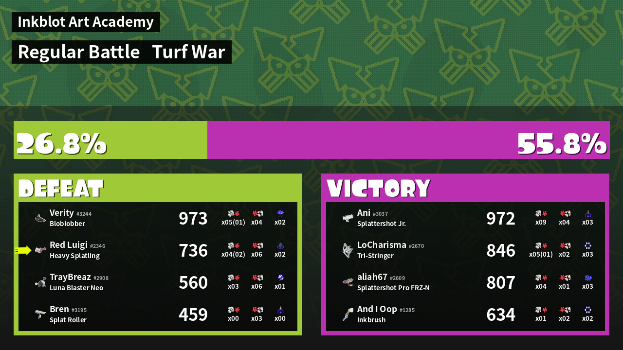 | Medals | #1 Splat Assister #1 Wave Breaker User #2 Overall Splatter | ||