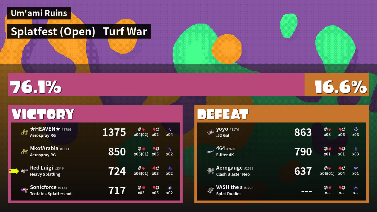 Kills / Deaths | 5 + 1 / 3 > Kill Ratio: 1.67 | ||