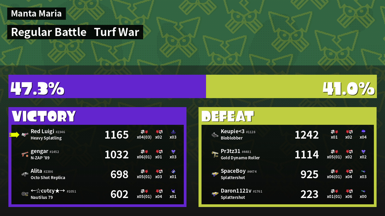 | Medals | #1 Turf Inker #1 Popular Target #1 Splat Assister | ||