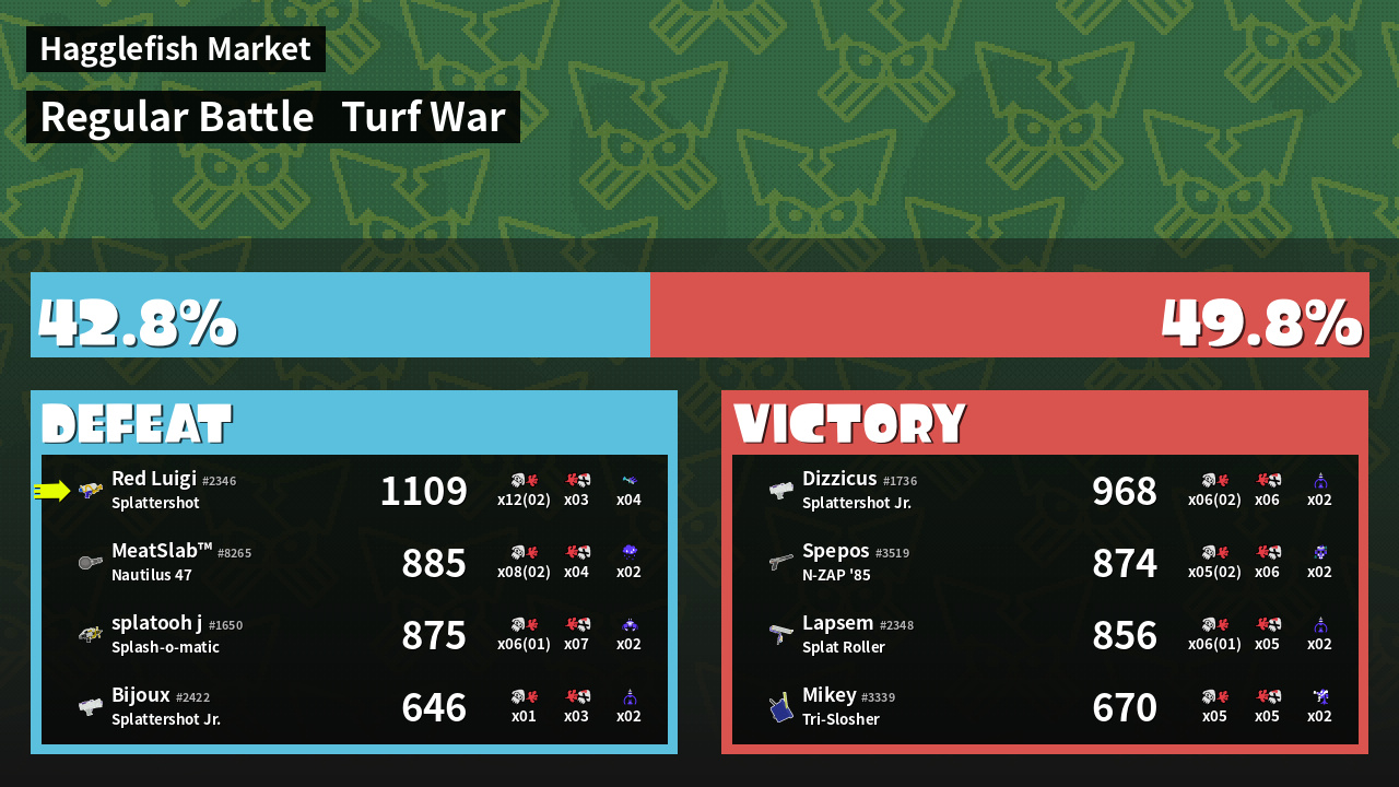 Kills / Deaths | 10 + 2 / 3 > Kill Ratio: 3.33 | ||