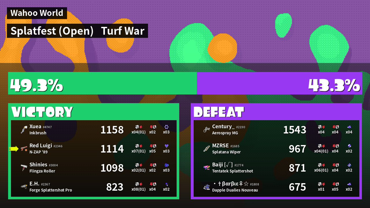 | Medals | #1 Popular Target #1 Enemy-Base Inker #1 Splat Assister | ||