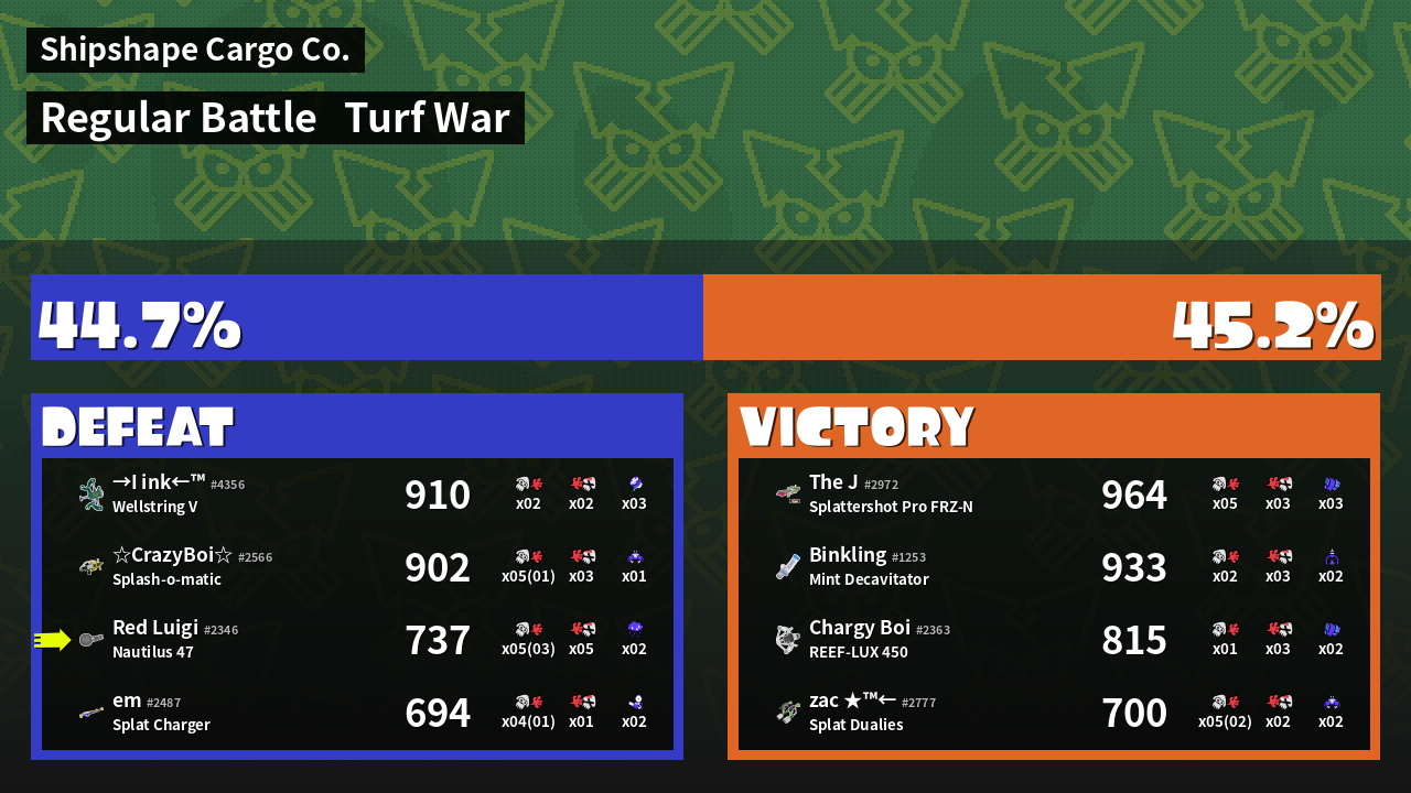 | Medals | #1 Overall Splatter #1 Popular Target #1 Enemy-Base Inker | ||
