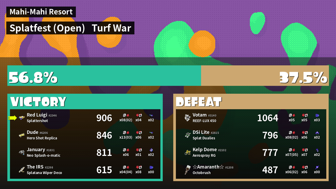 Kills / Deaths | 6 + 2 / 4 > Kill Ratio: 1.50 | ||