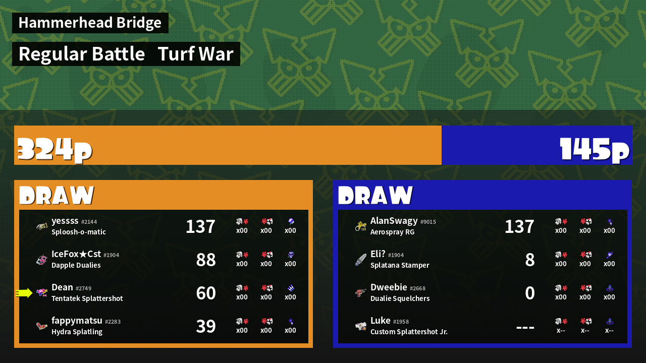 | Weapon | Tentatek Splattershot ( Splat Bomb / Triple Inkstrike) | ||